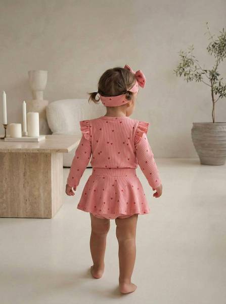 Κορμάκι Σομόν καρδιές & εκρού